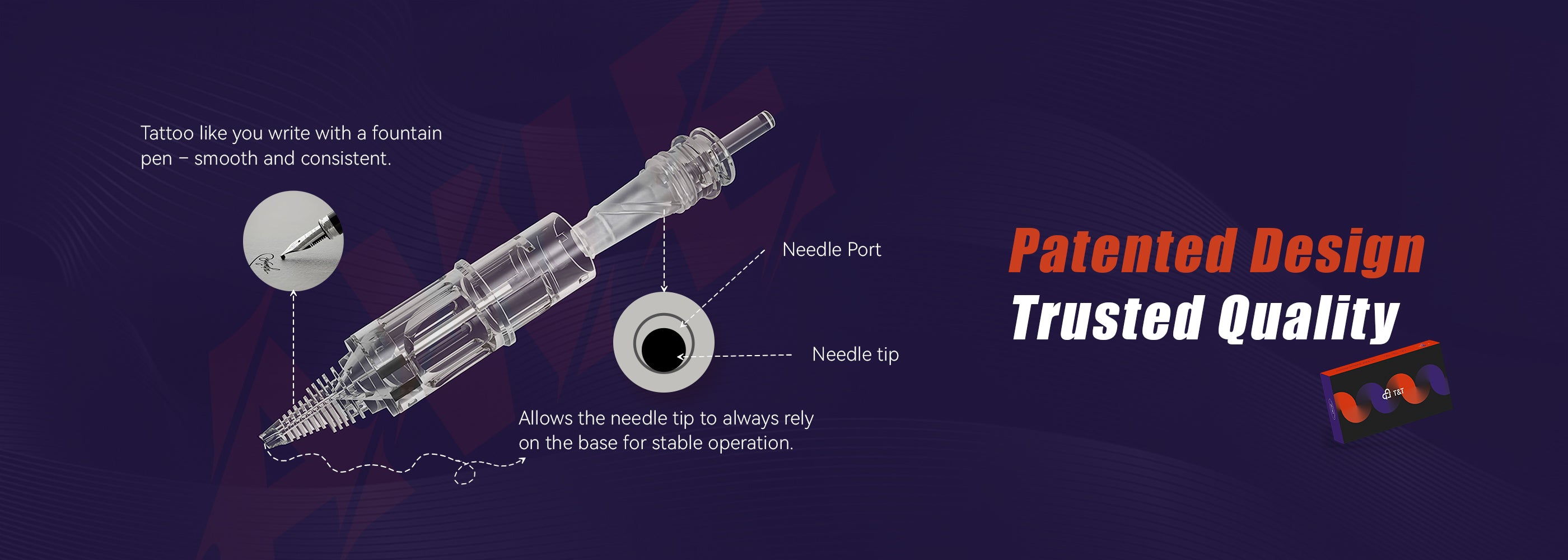 T&T needles have a special capillary-style tip, inspired by fountain pen technology. This design helps reduce ink splatter and leakage, giving a smoother and more consistent ink flow.